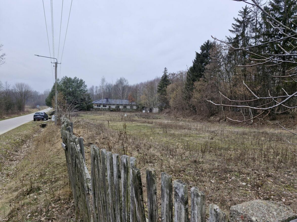 Otoczenie: las, luźna zabudowa jednorodzinna, teren równy, na obrzeżach działki rosną drzewa liściaste i iglaste